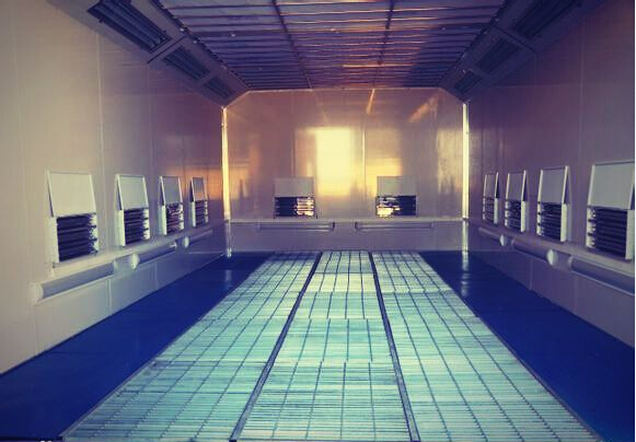 3.2底漆漆喷漆房概述及工作原理:房体封闭式设计,采用厚度50mm岩棉防火保温夹芯板建造房体,采用壁厚2.0mm40mm*60mm镀锌方管焊接工字梁链接房体结构。在房体内顶部安装标准照明防爆照明灯。地面铺设钢格栅及玻璃丝棉以保持地面清洁,后部安装出风口。底漆房空气交换方式采用全降负压式,可在工件的四周形成一恒定的气流以去除过量的油漆,从而*大限度地保证喷漆的质量。