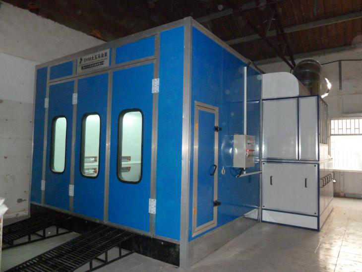 3.4    烤漆房:房体封闭式设计,采用50mm岩棉防火保温夹芯板,采用壁厚2.0mm40mm*60mm镀锌方管焊接工字梁链接房体结构。采用电热热风机加热,温度可控,常温-60℃选择电热热风机电热热风机18KW安装简单,接好电源线即可使用,升温速度快,在40平方米的房体内3-5分钟可达到30-50度,室内升温均匀,循环热风可吹到6-8米 经济实用:加温能耗平均低于普通的各种红外线加热管烤漆房能耗的50%以上。(*高使用温度60℃)电源线由购买方架设到设备接线柱。