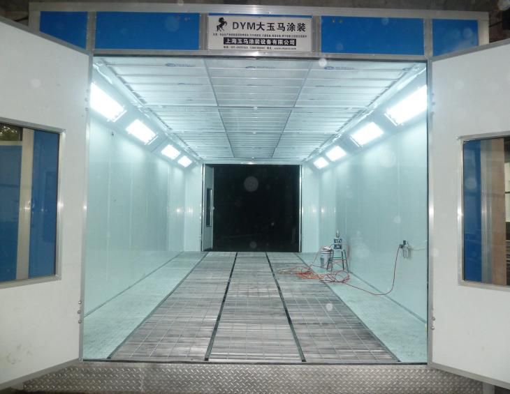 3.4    烤漆房:房体封闭式设计,采用50mm岩棉防火保温夹芯板,采用壁厚2.0mm40mm*60mm镀锌方管焊接工字梁链接房体结构。采用电热热风机加热,温度可控,常温-60℃选择电热热风机电热热风机18KW安装简单,接好电源线即可使用,升温速度快,在40平方米的房体内3-5分钟可达到30-50度,室内升温均匀,循环热风可吹到6-8米 经济实用:加温能耗平均低于普通的各种红外线加热管烤漆房能耗的50%以上。(*高使用温度60℃)电源线由购买方架设到设备接线柱。