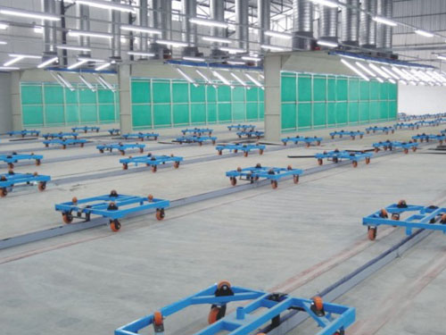3.2底漆漆喷漆房概述及工作原理:房体封闭式设计,采用厚度50mm岩棉防火保温夹芯板建造房体,采用壁厚2.0mm40mm*60mm镀锌方管焊接工字梁链接房体结构。在房体内顶部安装标准照明防爆照明灯。地面铺设钢格栅及玻璃丝棉以保持地面清洁,后部安装出风口。底漆房空气交换方式采用全降负压式,可在工件的四周形成一恒定的气流以去除过量的油漆,从而*大限度地保证喷漆的质量。