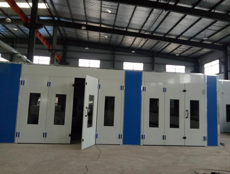 3.4    烤漆房:房体封闭式设计,采用50mm岩棉防火保温夹芯板,采用壁厚2.0mm40mm*60mm镀锌方管焊接工字梁链接房体结构。采用电热热风机加热,温度可控,常温-60℃选择电热热风机电热热风机18KW安装简单,接好电源线即可使用,升温速度快,在40平方米的房体内3-5分钟可达到30-50度,室内升温均匀,循环热风可吹到6-8米 经济实用:加温能耗平均低于普通的各种红外线加热管烤漆房能耗的50%以上。(*高使用温度60℃)电源线由购买方架设到设备接线柱。